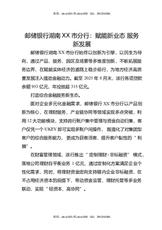 邮储银行湖南XX市分行:赋能新业态,服务新发展.docx
