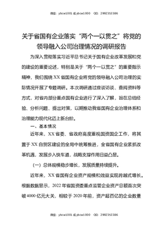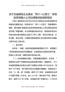 关于全省国有企业落实“两个一以贯之”将党的领导融入公司治理情况的调研报告.docx