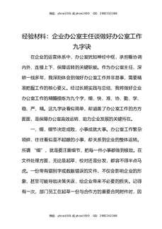 经验材料企业办公室主任谈做好办公室工作九字诀.docx
