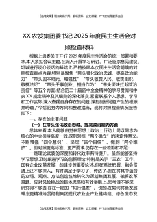 XX农发集团党委书记2025年度民主生活会对照检查材料.docx