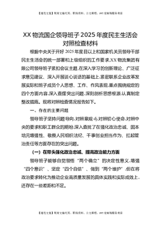 XX物流国企领导班子2025年度民主生活会对照检查材料.docx