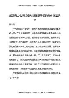能源电力公司纪委对新任职干部的集体廉洁谈话.docx
