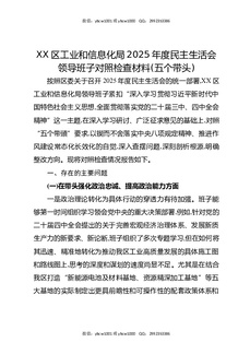 XX区工业和信息化局2025年度民主生活会领导班子对照检查材料(五个带头).docx