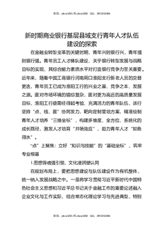 新时期商业银行基层县域支行青年人才队伍建设的探索.docx