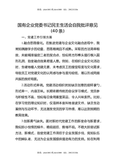 国有企业党委书记民主生活会自我批评意见(40条).docx