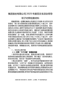集团股份有限公司2025年度民主生活会领导班子对照检查材料.docx