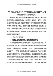 XX局工会主席2025年度民主生活会个人对照检查材料(五个带头).docx