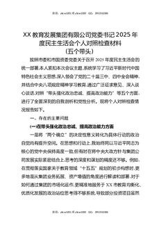 XX教育发展集团有限公司党委书记2025年度民主生活会个人对照检查材料(五个带头).docx