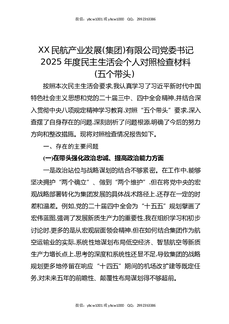 XX民航产业发展(集团)有限公司党委书记2025年度民主生活会个人对照检查材料(五个带头).docx