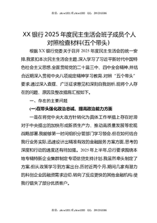 XX银行2025年度民主生活会班子成员个人对照检查材料(五个带头).docx
