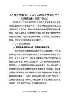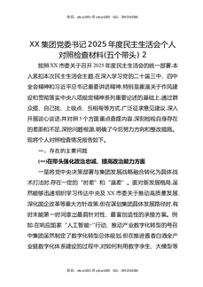 XX集团党委书记2025年度民主生活会个人对照检查材料(五个带头)2.docx