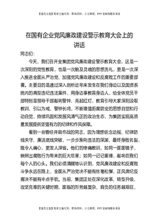 在国有企业党风廉政建设警示教育大会上的讲话.docx