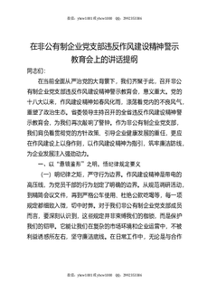 在非公有制企业党支部违反作风建设精神警示教育会上的讲话提纲.docx