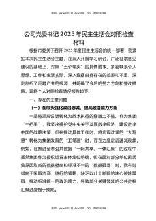 公司党委书记2025年民主生活会对照检查材料.docx