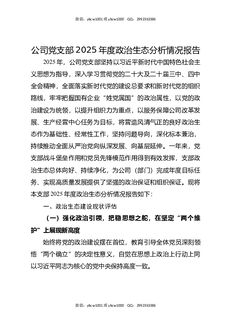 公司党支部2025年度政治生态分析情况报告.docx