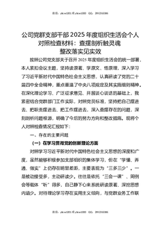 公司党群支部干部2025年度组织生活会个人对照检查材料:查摆剖析触灵魂,整改落实见实效.docx