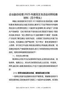 企业副总经理2025年度民主生活会对照检查材料(五个带头).docx