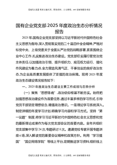 国有企业党支部2025年度政治生态分析情况报告.docx