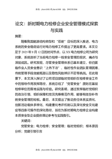 论文:新时期电力检修企业安全管理模式探索与实践.docx