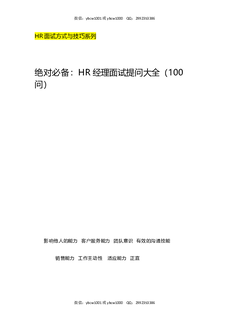 绝对必备:HR经理面试提问大全(100问).doc