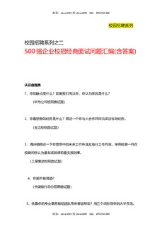 金九银十招聘季:《500强企业校招经典面试问题汇编》(含答案).doc