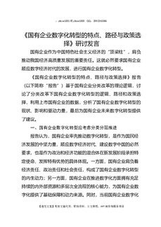 《国有企业数字化转型的特点、路径与政策选择》研讨发言.docx