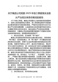 关于集团公司党委2025年前三季度落实全面从严治党主体责任情况的报告.docx
