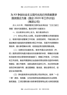 为XX争创社会主义现代化先行市贡献更多国资国企力量(国企202X年工作计划)(集团公司).docx