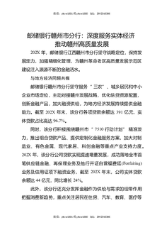 邮储银行赣州市分行:深度服务实体经济,推动赣州高质量发展.docx