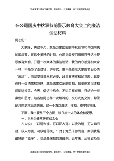 在公司国庆中秋双节前警示教育大会上的廉洁谈话材料.docx
