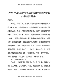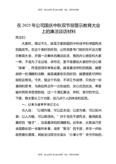 在2025年公司国庆中秋双节前警示教育大会上的廉洁谈话材料.docx