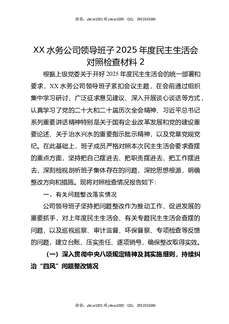 XX水务公司领导班子2025年度民主生活会对照检查材料2.docx