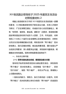 XX物流国企领导班子2025年度民主生活会对照检查材料2.docx
