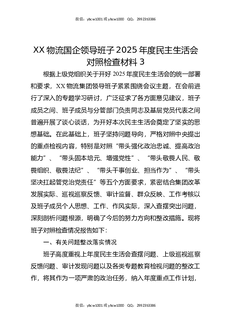 XX物流国企领导班子2025年度民主生活会对照检查材料3.docx