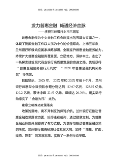 庆祝兰州银行上市X周年:发力普惠金融,畅通经济血脉.docx