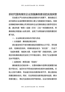 新时代国有煤炭企业加强廉政建设的实践探索.docx