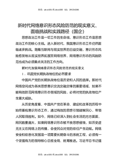 新时代网络意识形态风险防范的现实意义,面临挑战和实践路径(国企).docx