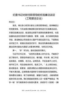 纪委书记对新任职领导的任前廉洁谈话(工程建设企业).docx