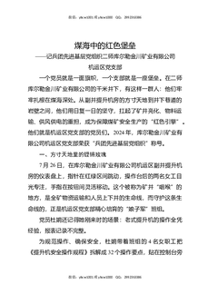 记兵团先进基层党组织二师库尔勒金川矿业有限公司机运区党支部:煤海中的红色堡垒.docx