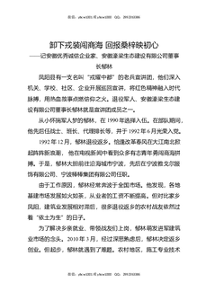 记安徽优秀诚信企业家,安徽濠梁生态建设有限公司董事长郁林:卸下戎装闯商海,回报桑梓映初心.docx