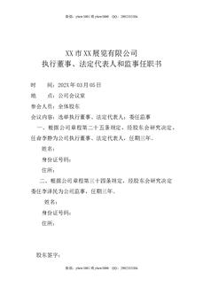 XX市XX展览有限公司执行董事,法定代表人和监事任职书.doc