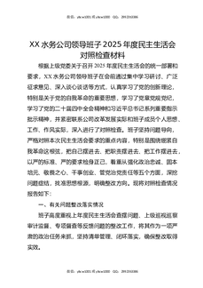 XX水务公司领导班子2025年度民主生活会对照检查材料.docx