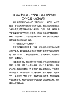 国网电力有限公司党委开展基层党组织工作汇报(集团公司).docx