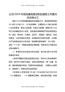 公司202X年党风廉政建设和反腐败工作要点及任务分工.docx