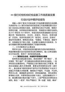 XX银行纪检机构纪检监察工作高质量发展行动计划中期评估报告.docx