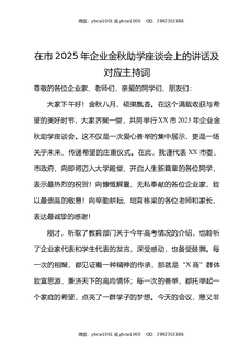 在市2025年企业金秋助学座谈会上的讲话及对应主持词.docx