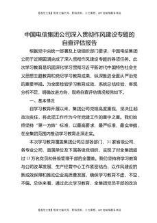 中国电信集团公司深入贯彻作风建设专题的自查评估报告.docx
