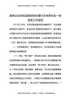 国有企业纪检监察组组长履行主体责任及一岗双责工作报告.docx
