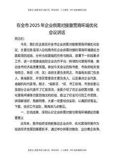 在全市2025年企业供需对接暨营商环境优化会议讲话.docx
