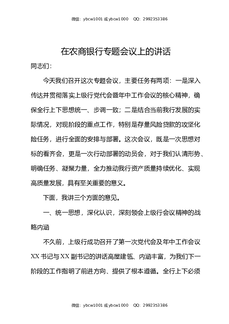 在农商银行专题会议上的讲话.docx